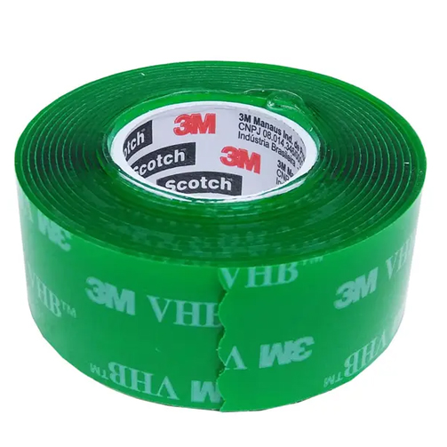 A Fita Dupla Face 3M é constituída por uma massa de adesivo acrílico transparente e liner protetor de polietileno na cor verde.